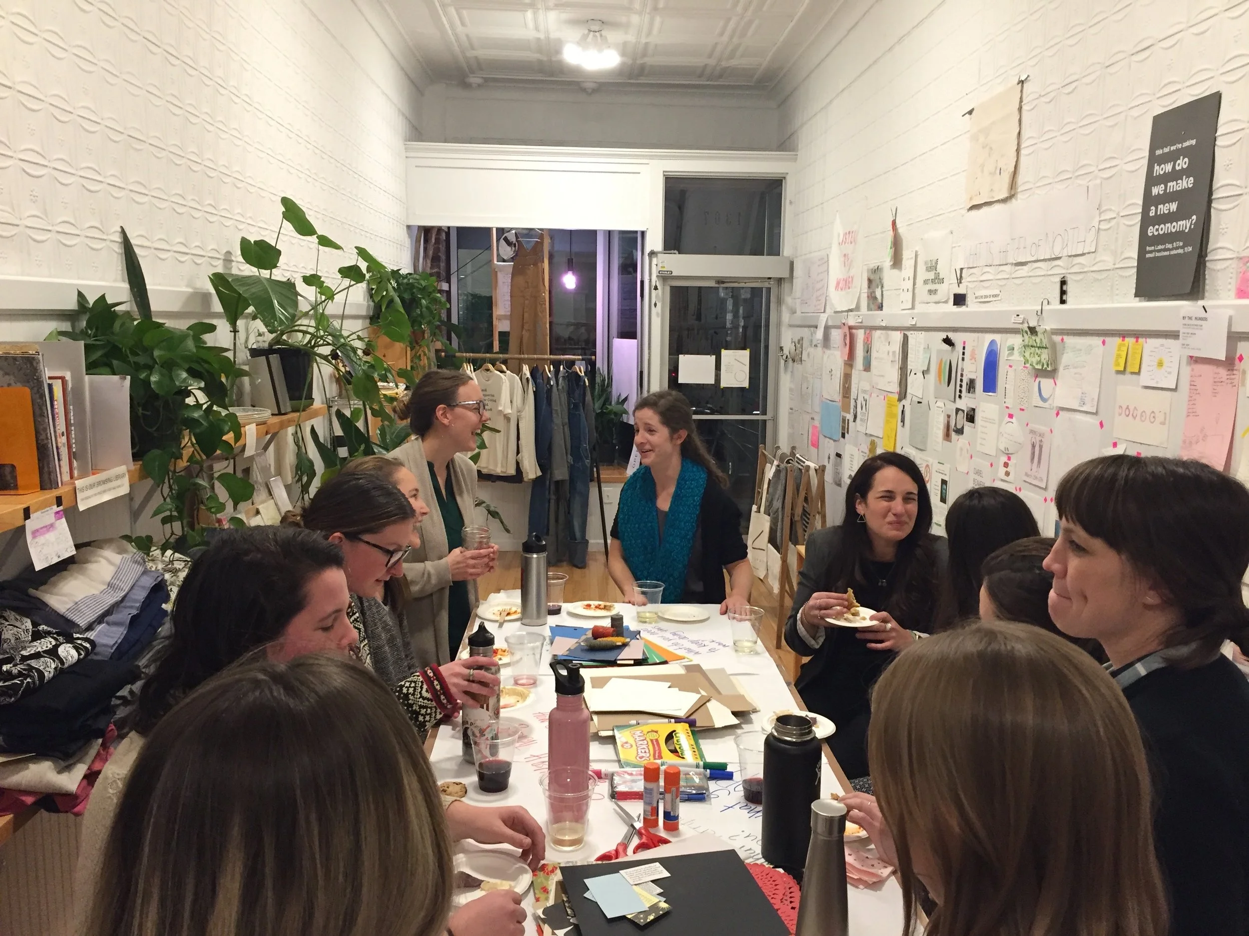 Climate Coven was developed in collaboration with Practice Space, a local studio, storefront, and research-based social practice project led by artists Diana Lempel and Nicole Lattuca, and co-facilitated with my colleague and friend Hannah Payne, Director of Carbon Neutrality for the City of Boston. Together, we designed a series of gatherings for women and nonbinary people working in climate and sustainability fields, using reflection, dialogue, and collective art-making as tools for processing professional burnout, climate grief, and ethical responsibility.