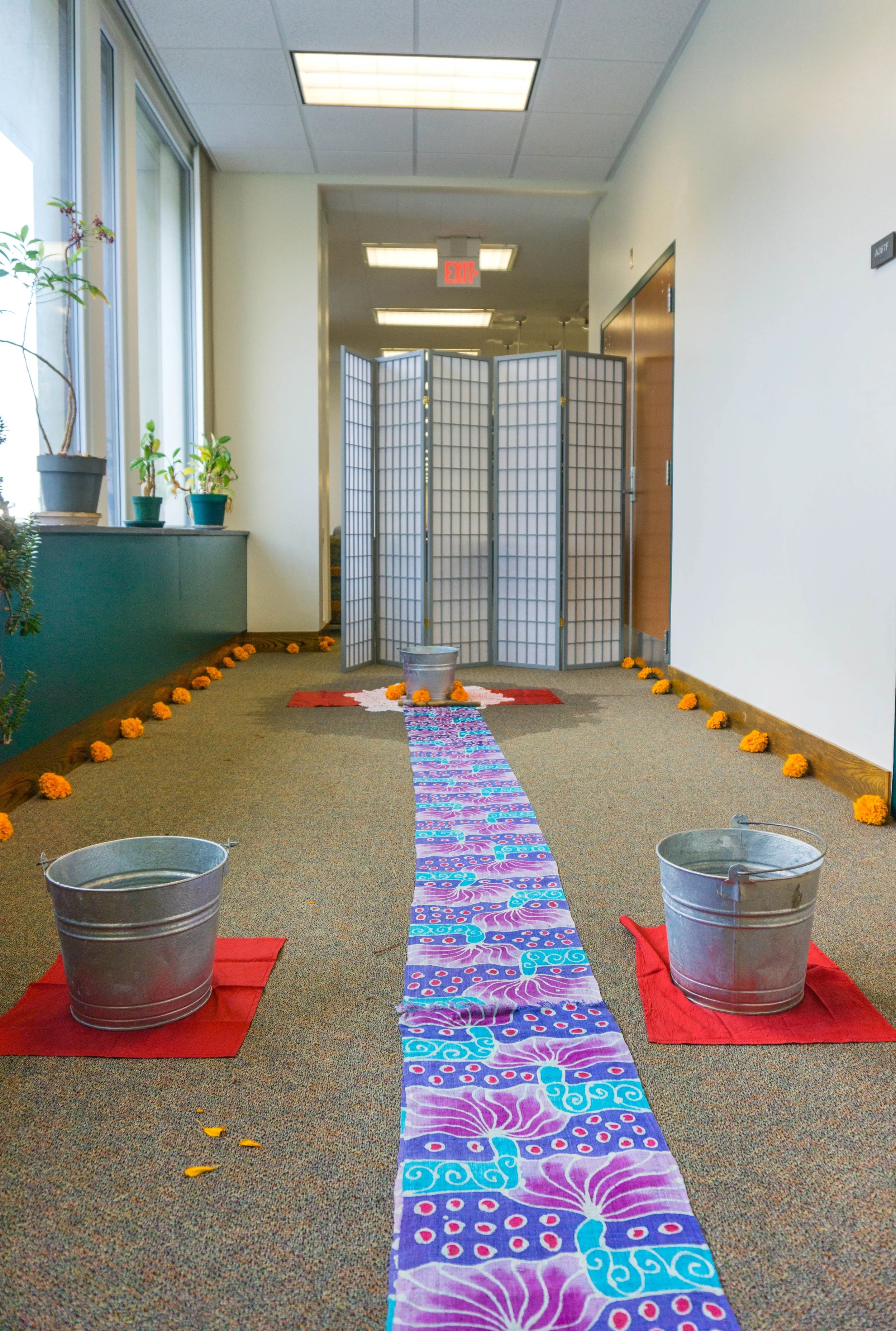 The quilt’s composite, iterative construction reflects an ethic of interdependence: it was built slowly, collaboratively, and through attention to both human and more-than-human sources. Designed to function flexibly—as a welcoming threshold banner, an invitational centerpiece for shared meals, or a shawl for metta (loving-kindness) meditation—the piece privileges use, touch, and relational presence over fixed modes of display.