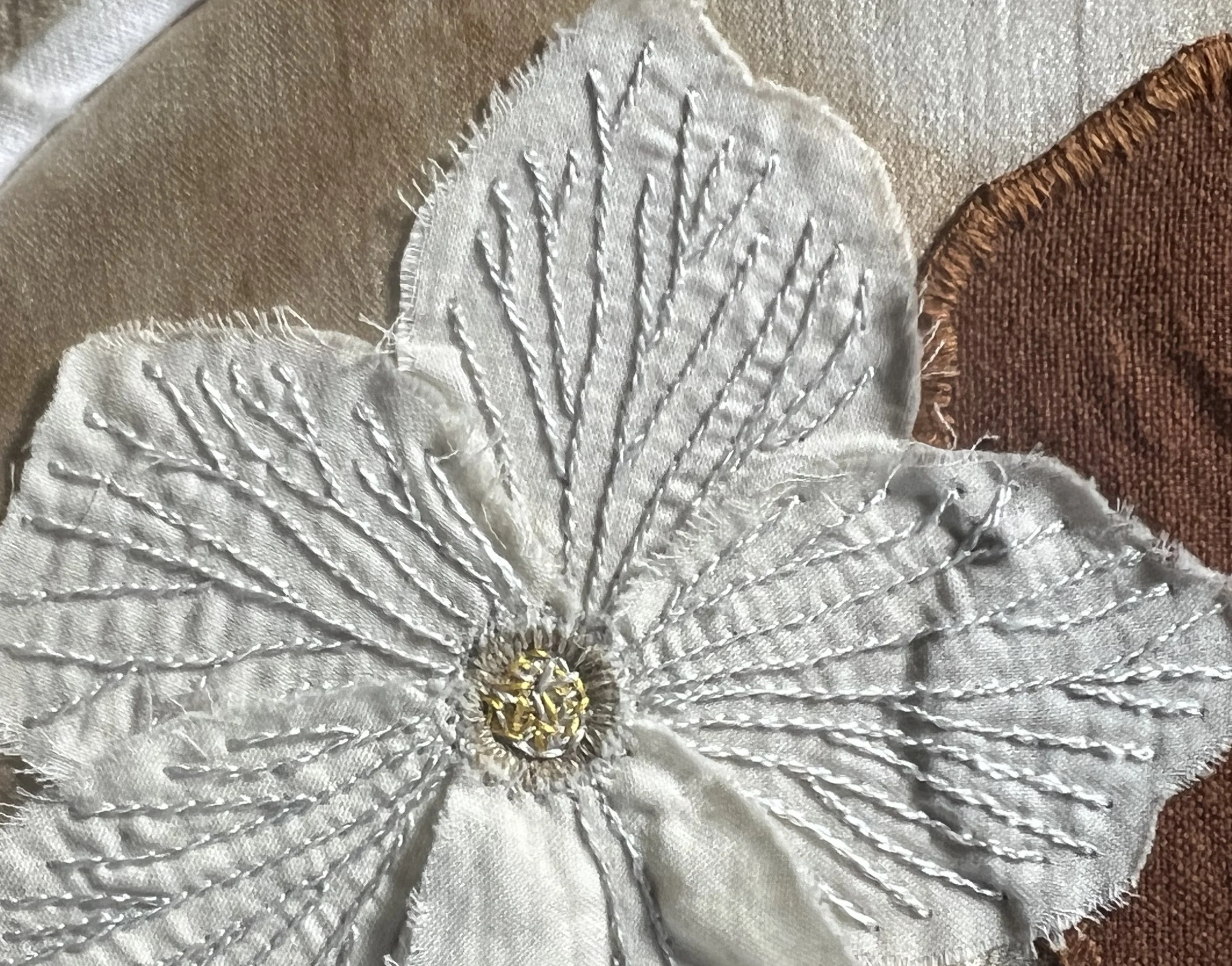 Inspired by Thich Nhat Hanh’s teachings on mindfulness and interbeing, the work considers how personal relationships with plants are shaped through practices of attentiveness, care, and collective labor. By foregrounding plants not as decorative motifs but as material collaborators, the quilt asks how practices of making together can mediate experiences of belonging, ecological awareness, and responsibility.
