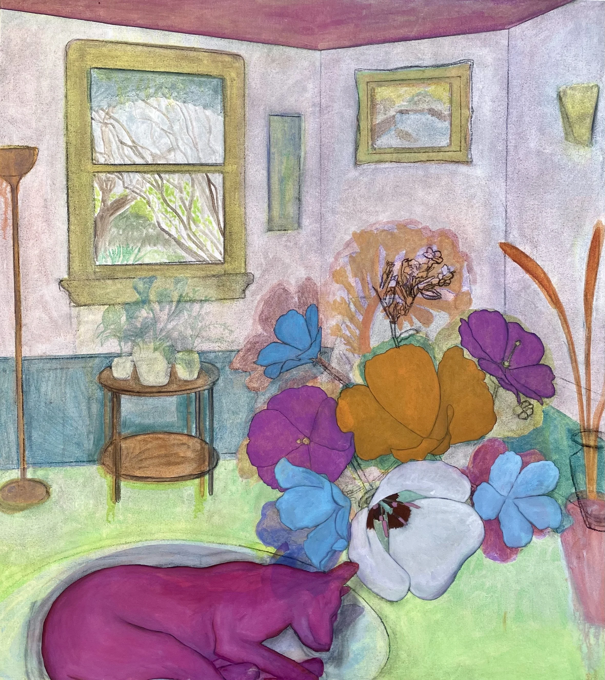 This ongoing painting series explores everyday domestic scenes and rural landscapes as sites where land, leisure, labor, and belonging quietly intersect. Plants appear not as background elements but as protagonists—occupying space, expressing agency, and engaging in rituals of reflection, care, maintenance, and rest. By focusing on familiar, often overlooked scenes, the work considers how vegetal labor underpins human comfort and productivity while remaining largely unseen.